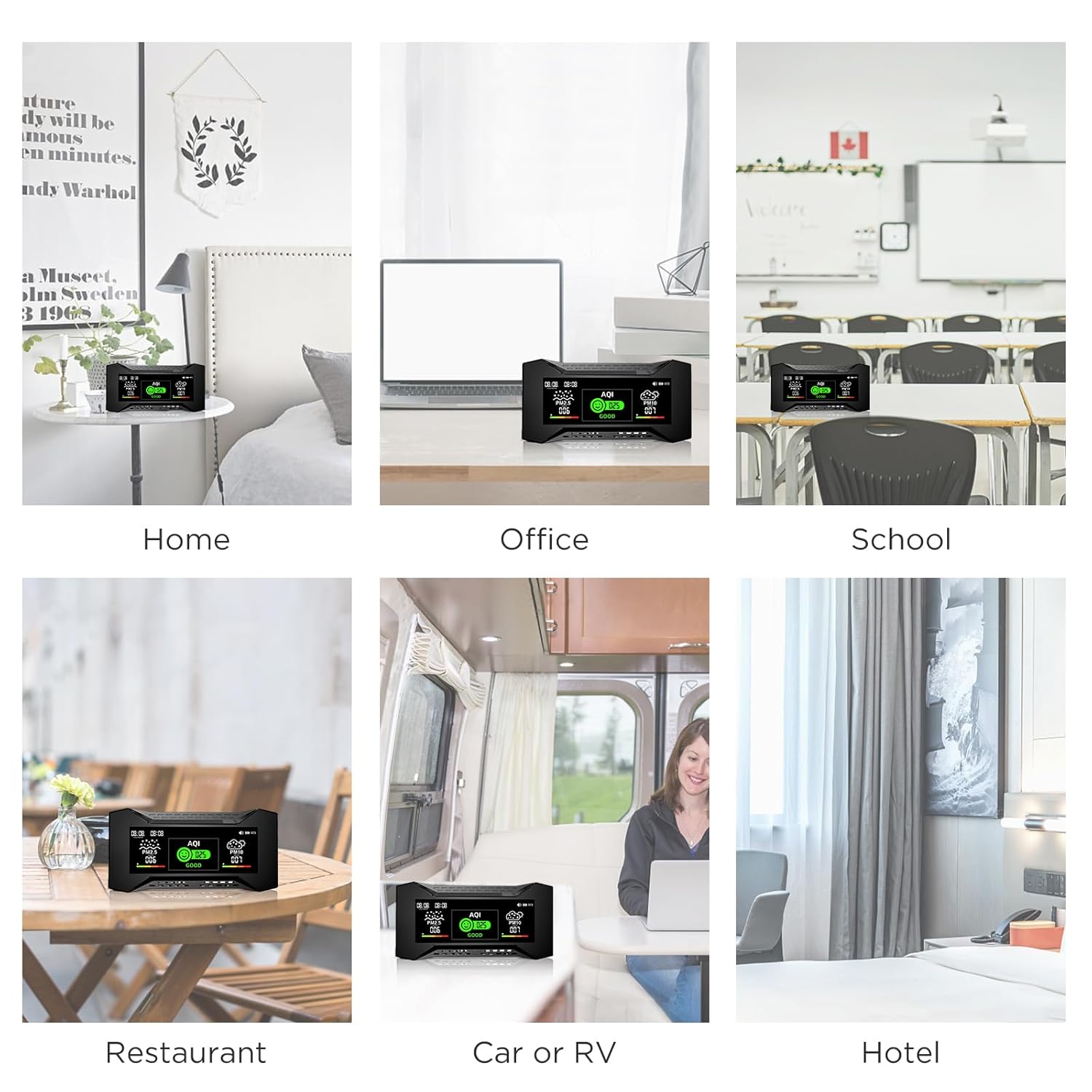 Accurately tracks all key indoor air parameters affecting health and safety, including AQI, PM2.5, PM10, CO₂, HCHO, TVOC, temperature, humidity and date/time—all in one professional device.