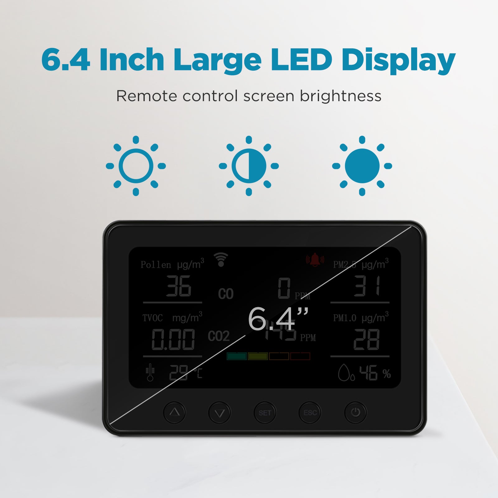 • ๐™‡๐™–๐™ง๐™œ๐™š ๐™‡๐˜พ๐˜ฟ ๐˜ฟ๐™ž๐™จ๐™ฅ๐™ก๐™–๐™ฎ: The carbon dioxide detector with 6.4 inch large lcd display. It is convenient to view real-time data on the screen from a distance.