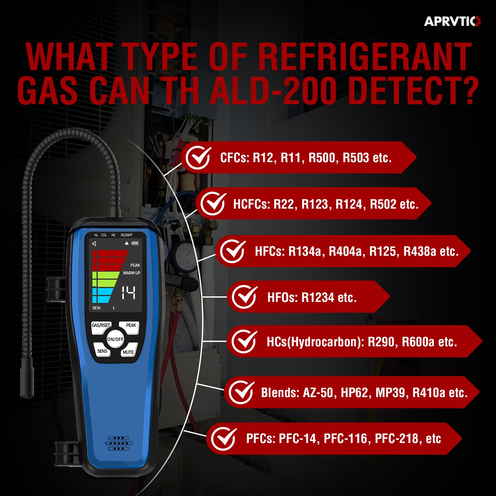 Aprvtio ALD-200 AC Refrigerant Leak Detector for HVAC, Car, Refrigerator R32,R454B, R410A