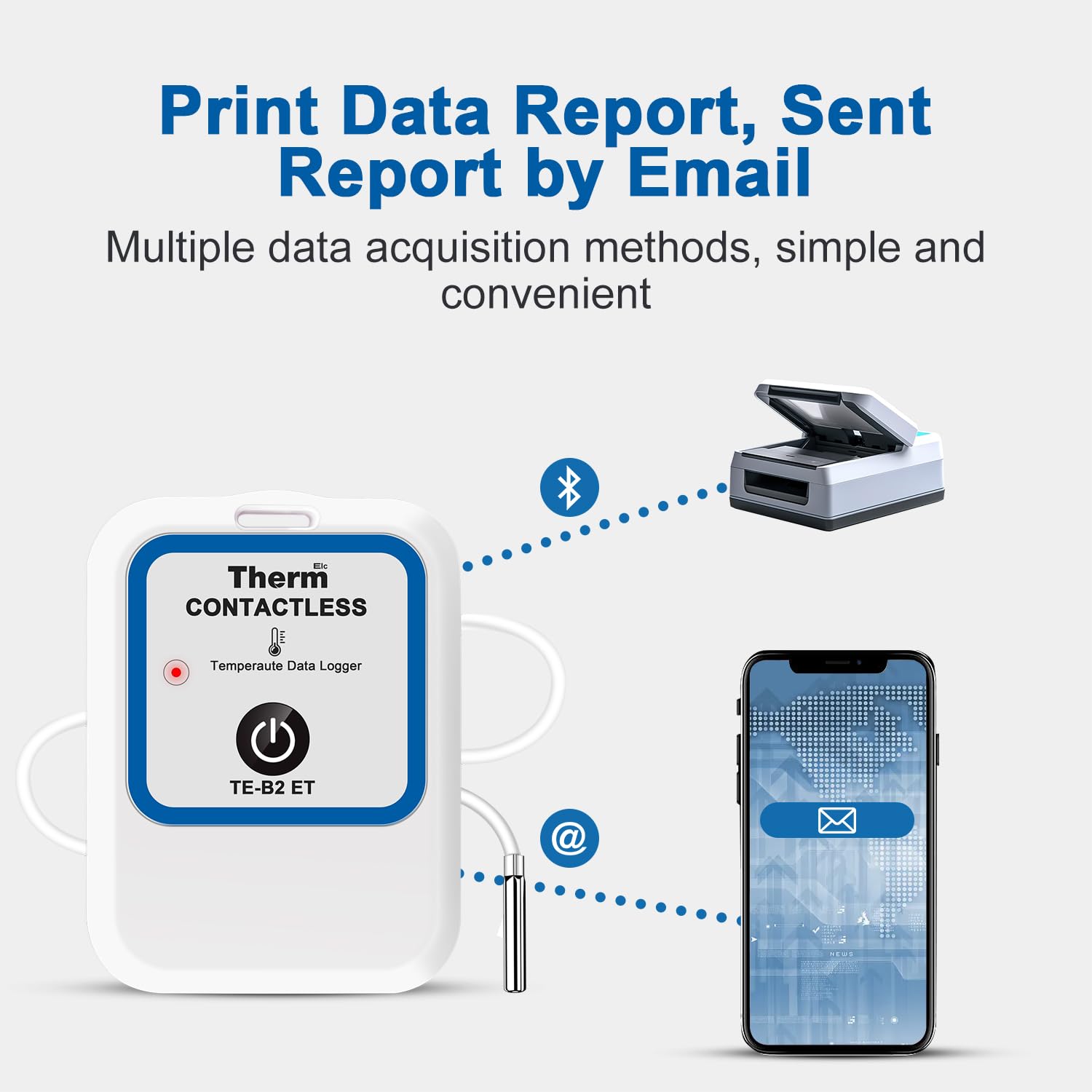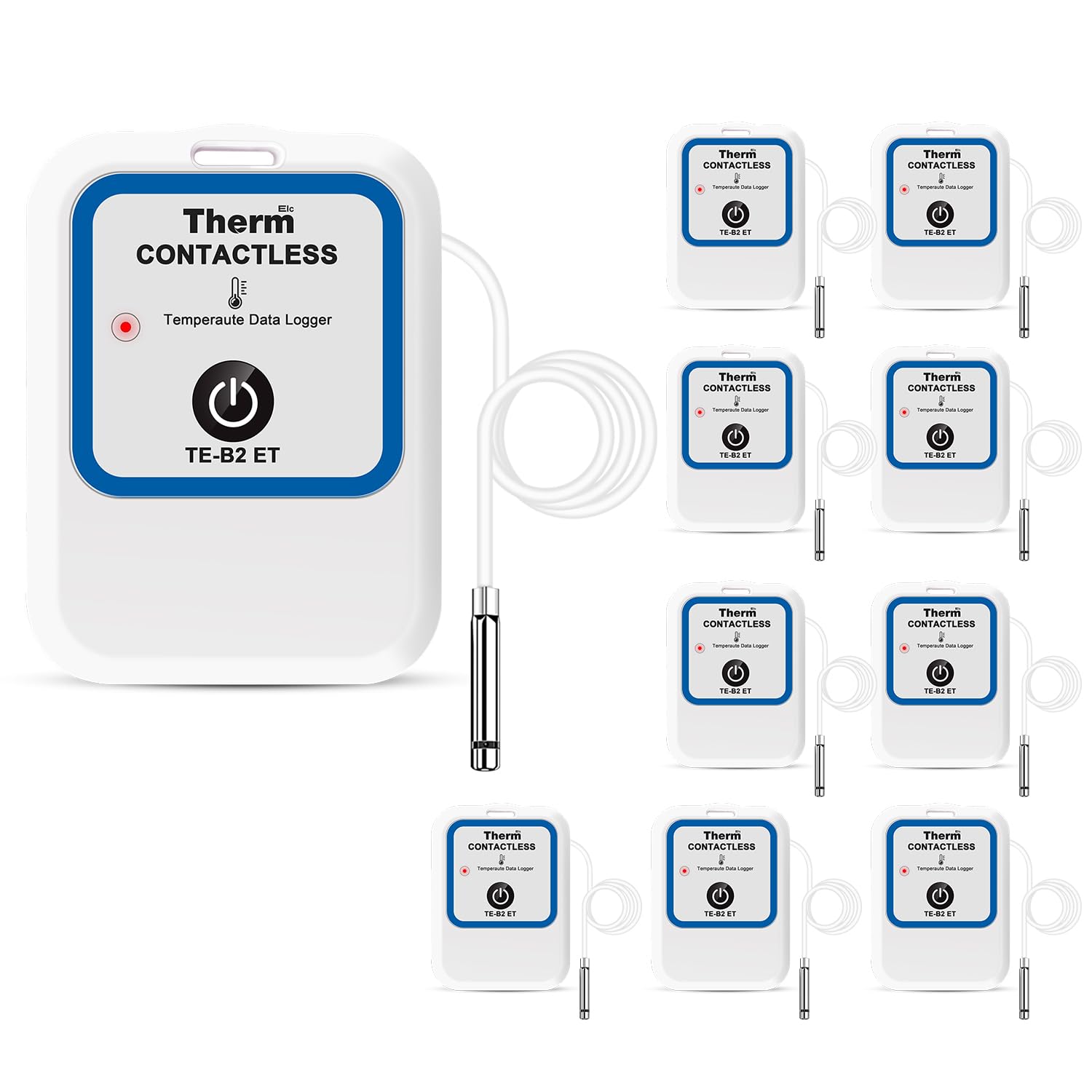 ThermElc TE-B2 ET 10PCS Bluetooth Temperature Data Logger with External Probe, Tank Thermometer Aquarium Auto PDF CSV Report, Compare Multi-Devices Data, Monitor Cold & Frozen Storage