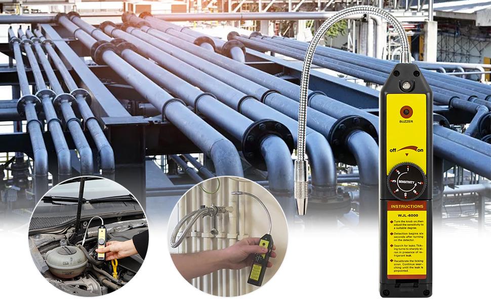 WJL-6000 portable refrigerant freon leak detector is a reliable and economic tool with easy operation. Its main applications are detecting pipeline leakage, automobile air conditioner, cold storage, refrigerator repair etc. It detects all kinds of halogen refrigerants including but not limited to R11, R12, R500, R503, R22, R123, R124, R502, R125, R134a, R404a R600a R290,etc. This detector is widely used by technicians and is the best seller of all the detectors.