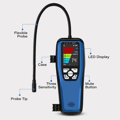 · 【Multi-Alarms】The audible and visual display alarms in the leak detector refrigerant car can easily help you to locate where the leakage is. Once leaking gas is detected, the beep frequency will increase. The more gas leaked, the quickly the buzzer beeps, at the same time, the LCD screen displays the leakage level.
