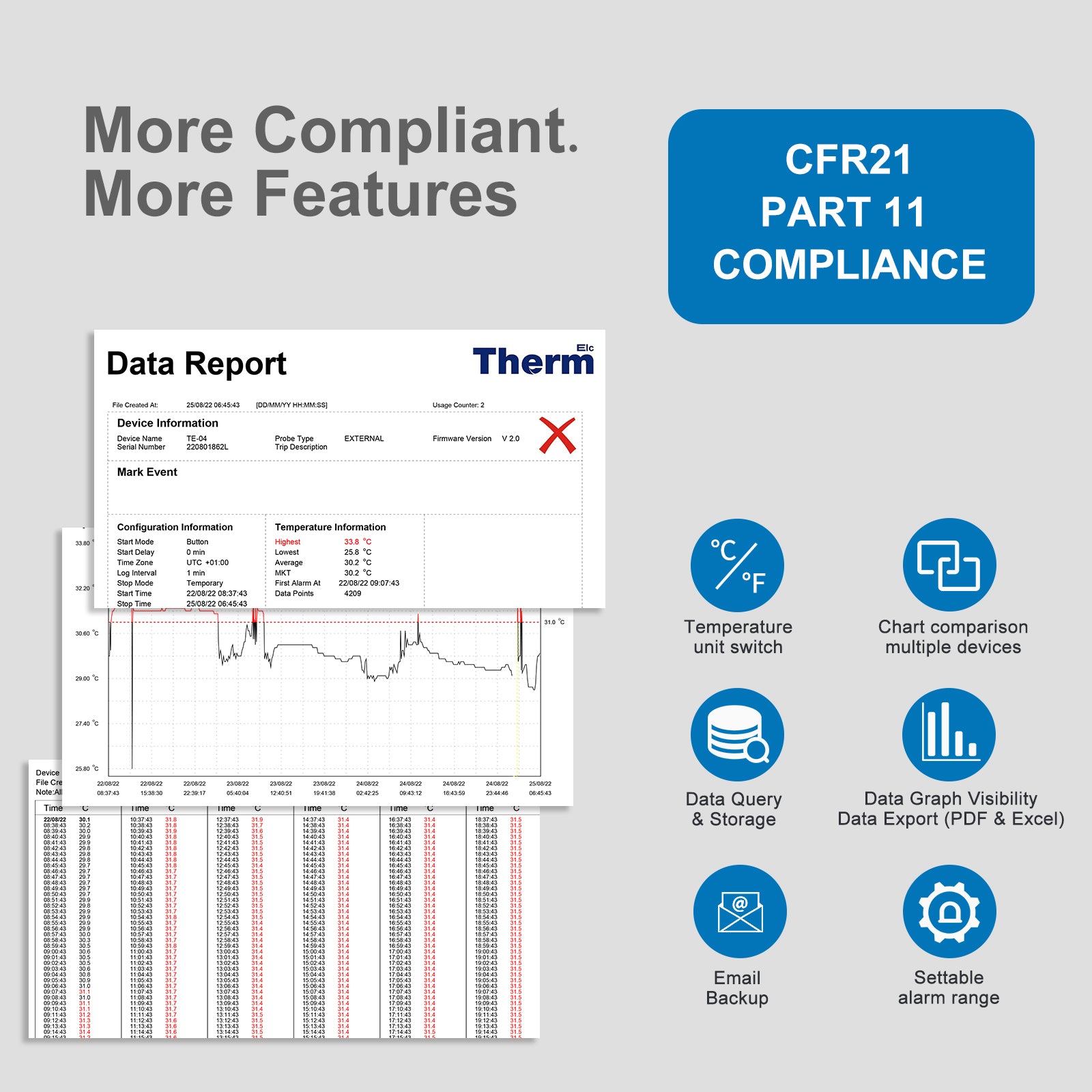 ThermElc TE-02 Temperature logger with Auto PDF Report -30°C ~+60°C, for Cold Chain, Pharmacy & Logistics