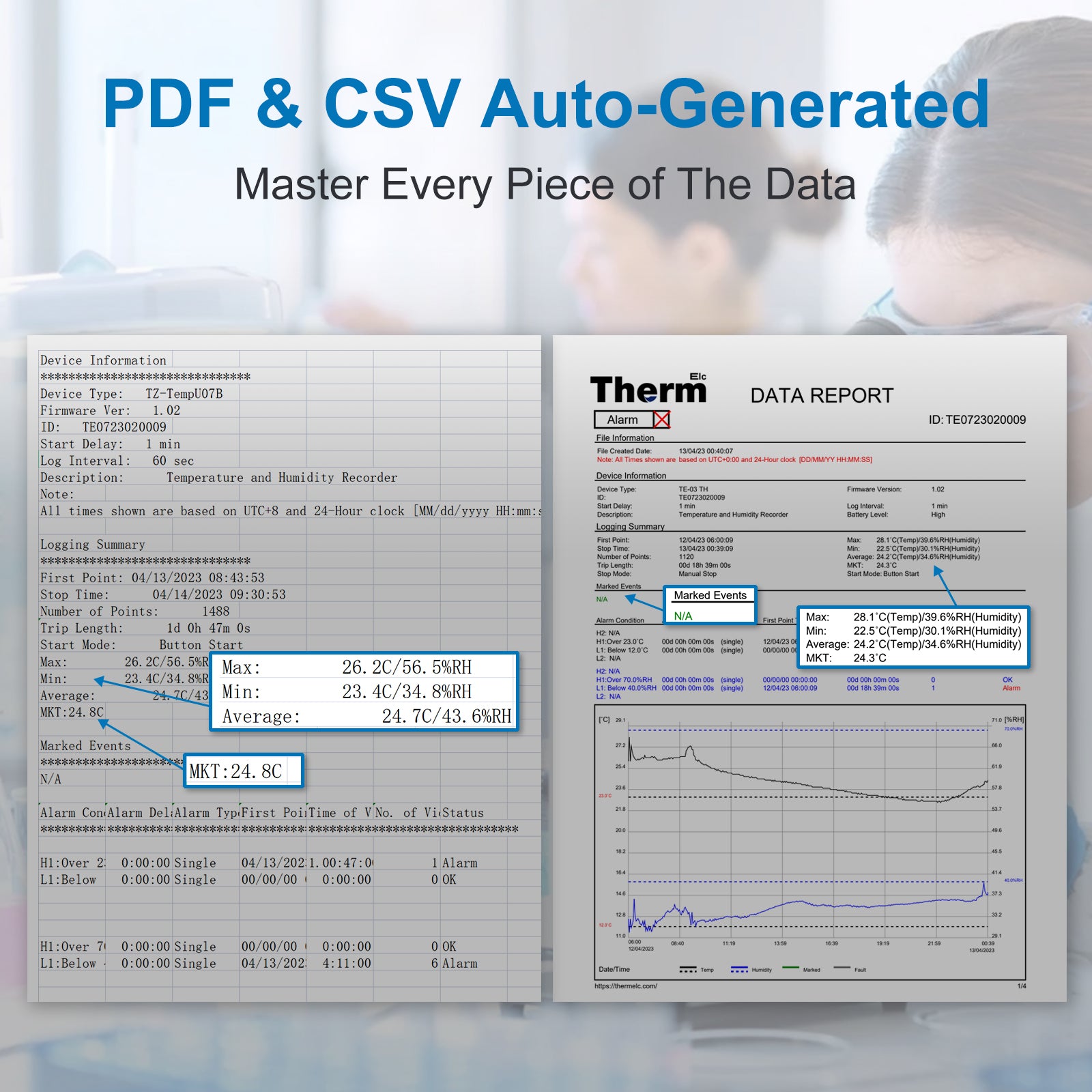 ThermElc TE-03 ETH Digital Temperature And Humidity Data Logger With External Probes, MKT Calculation, 32,000 Points, Auto PDF/CSV USB Reusable Recorder