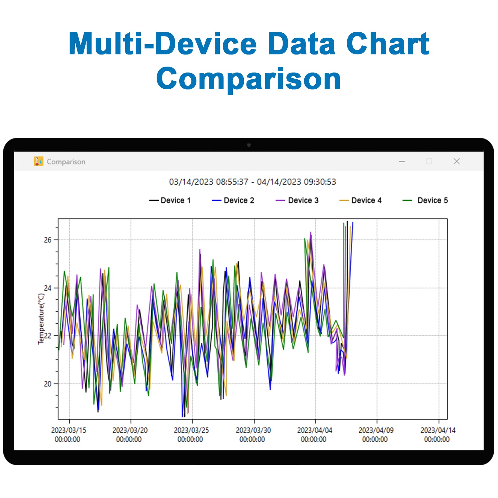 Our fridge data logger with probe comes with free data management software, allowing you to compare data charts across multiple devices.