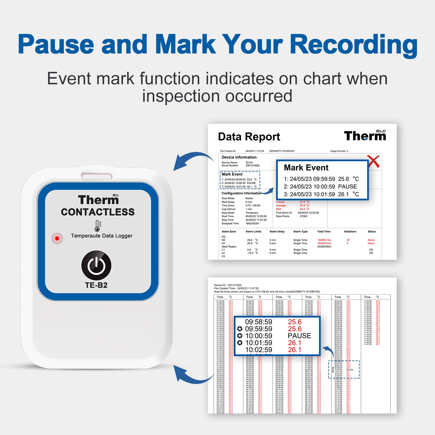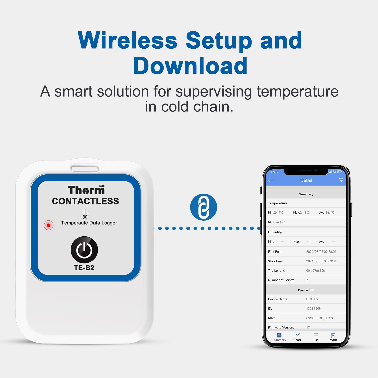 ThermElc TE-B2 10PCS Bluetooth Temperature Data Logger, Auto PDF CSV Report, Compare Multi-Devices Data, Monitor Cold & Frozen Storage