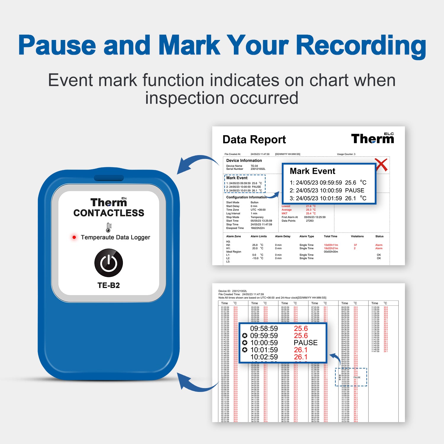 ThermElc TE-B2 Bluetooth Temperature Data Logger, Auto PDF CSV Report, Compare Multi-Devices Data, Monitor Cold & Frozen Storage