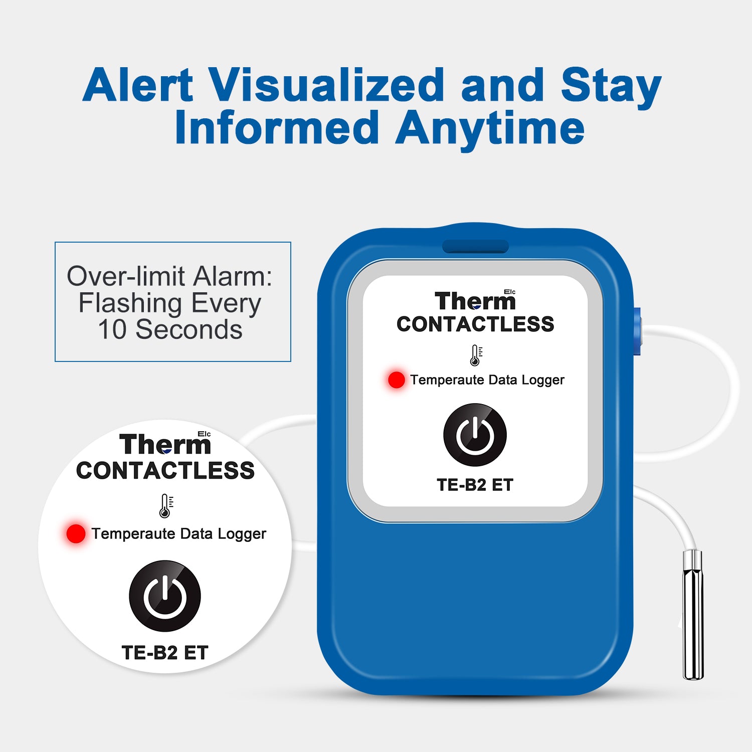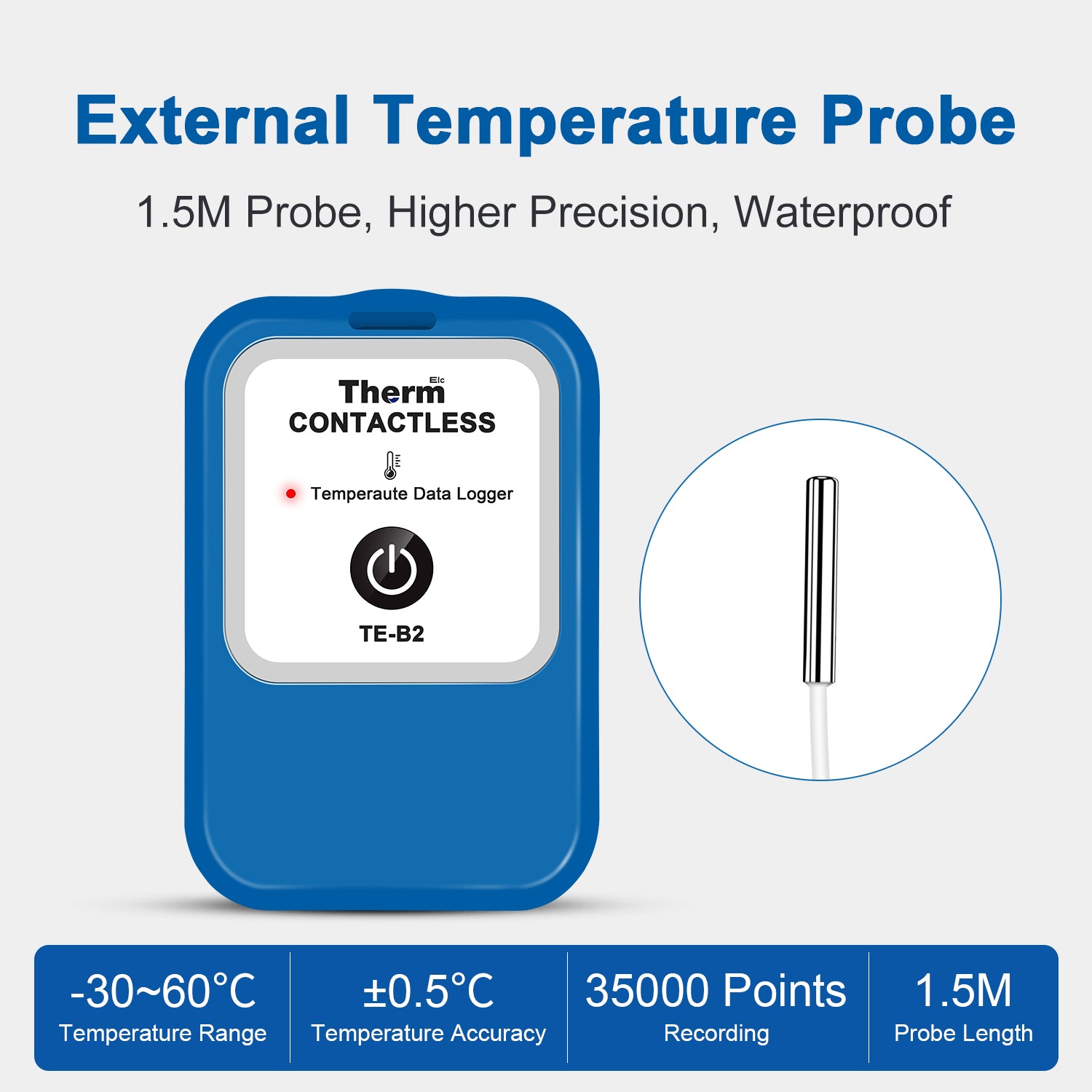 ThermElc TE-B2 ET Bluetooth Temperature Data Logger with External Probe, Tank Thermometer Aquarium Auto PDF CSV Report, Compare Multi-Devices Data, Monitor Cold & Frozen Storage